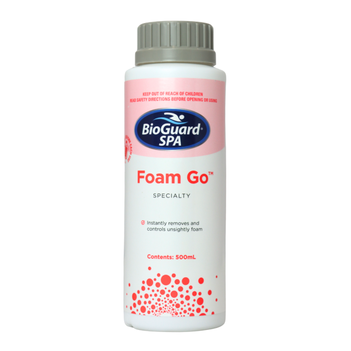 BioGuard Foam Go eliminates foaming in spas and pools with attached spas. Can also be used to treat foaming in ornamental fountains. Does not affect pH and can be used with all sanitiser types.