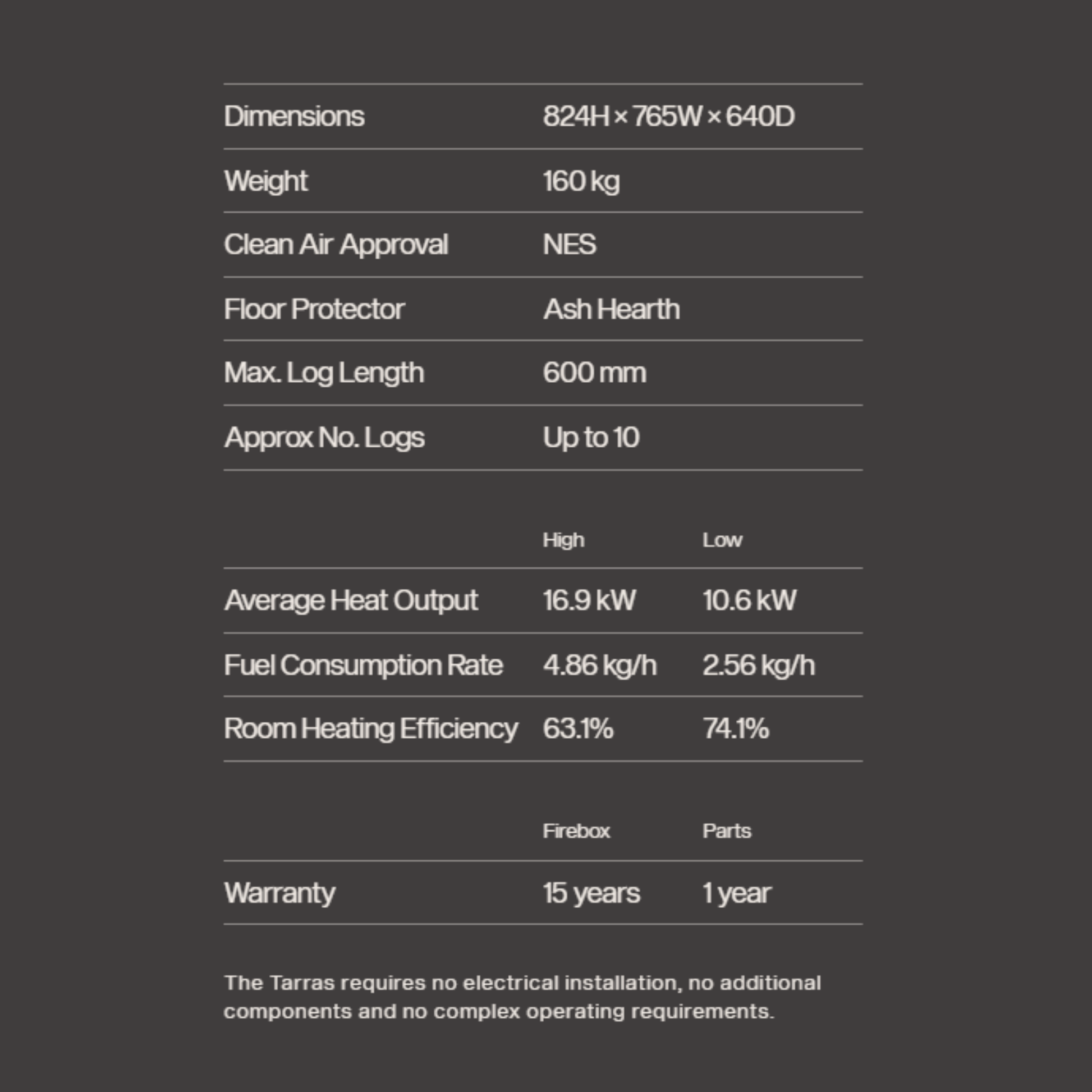 The Tarras MkIII outperforms the National Environmental Standards for emissions and efficiency.